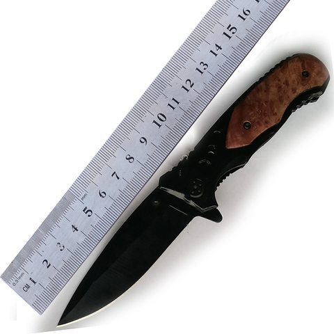 Couteau de combat en bois en acier inoxydable, couteau de poche pliable, couteau de chasse tactique de survie en plein air
